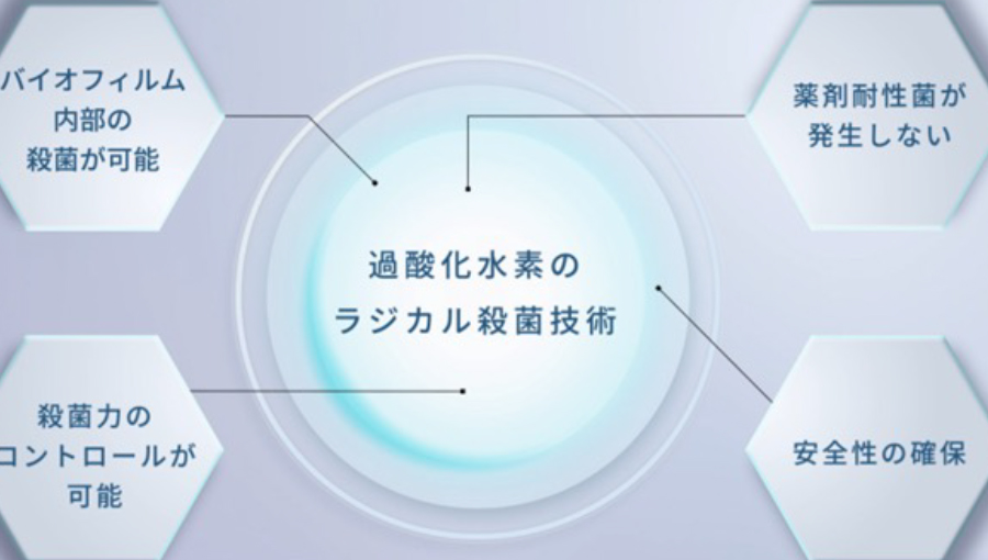このラジカルは、以下の特徴を持つため、従来の薬剤では到達不可能だった領域への殺菌が可能です。