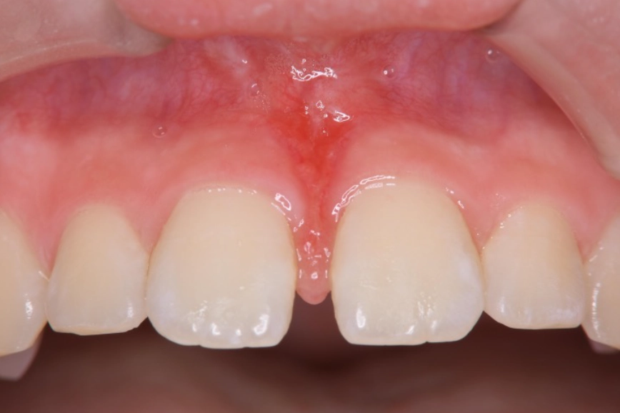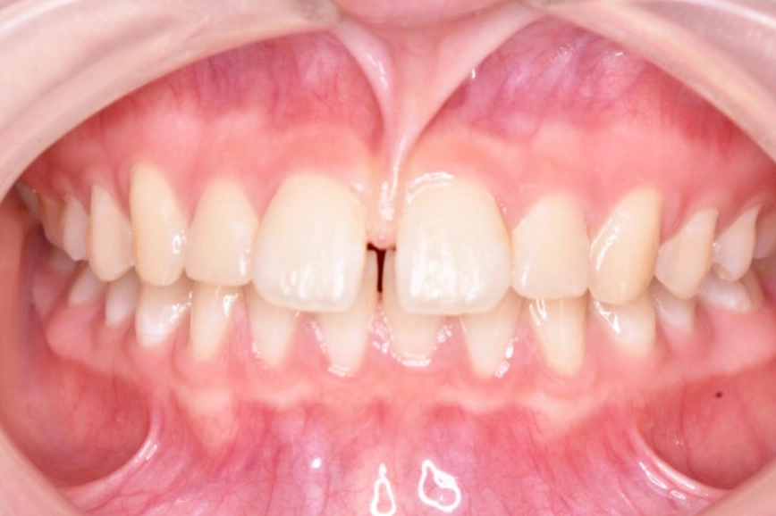 治療内容 | 見た目が気になり、上の前歯は歯ブラシが当たると少し痛いとのことで来院されました。 上唇小帯については、上唇小帯切除術し、傷口が治癒した後は、インビザラインにて矯正治療を行いました。 |