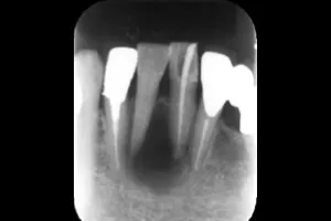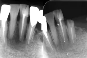 | 治療内容 | 1.歯髄が生きているかどうかの確認 2.根管治療 3.修復治療 4.経過観察 治療の結果腫れもなくなり、歯の移動も戻りました。 |